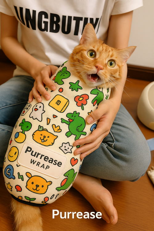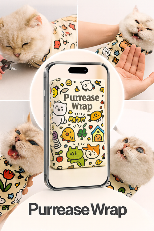 PurrEase Cat Wrap gently soothes anxious cats, shielding them from scratches and bites. Soft, breathable, and fully adjustable – the stress-free solution for grooming, vet visits, and playtime.