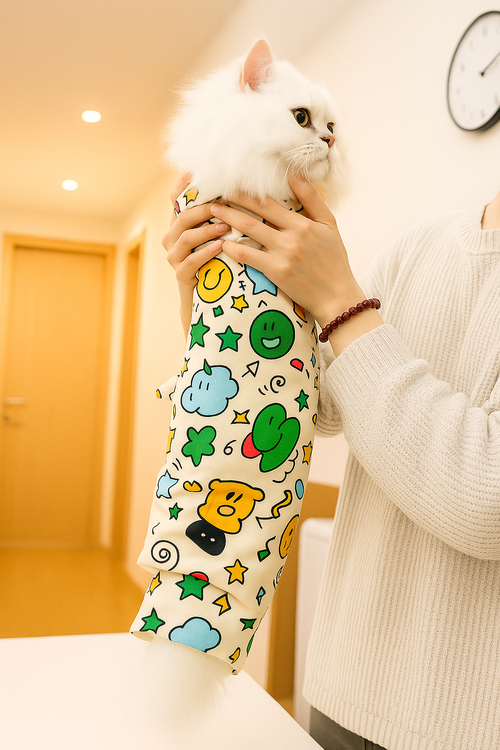 This wrap has been a game-changer during grooming. My tabby used to hiss and lash out, but now she stays calm and cooperates. Easy to adjust and machine-washable – a must-have for pet owners.